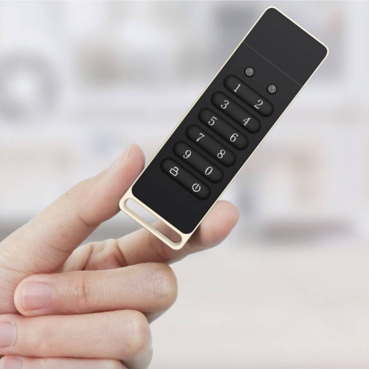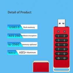 This USB drive features AES256 encryption with a built-in independent chip, protecting data from brute force attacks at the hardware level. It offers high-speed transmission with a 3.0 protocol, ideal for large file transfers. The key unlock design ensures no password trace, resetting after ten incorrect attempts. The device automatically locks if disconnected or idle for 30 seconds, preventing data theft. Its compact, portable design allows it to be easily attached to a keyring.